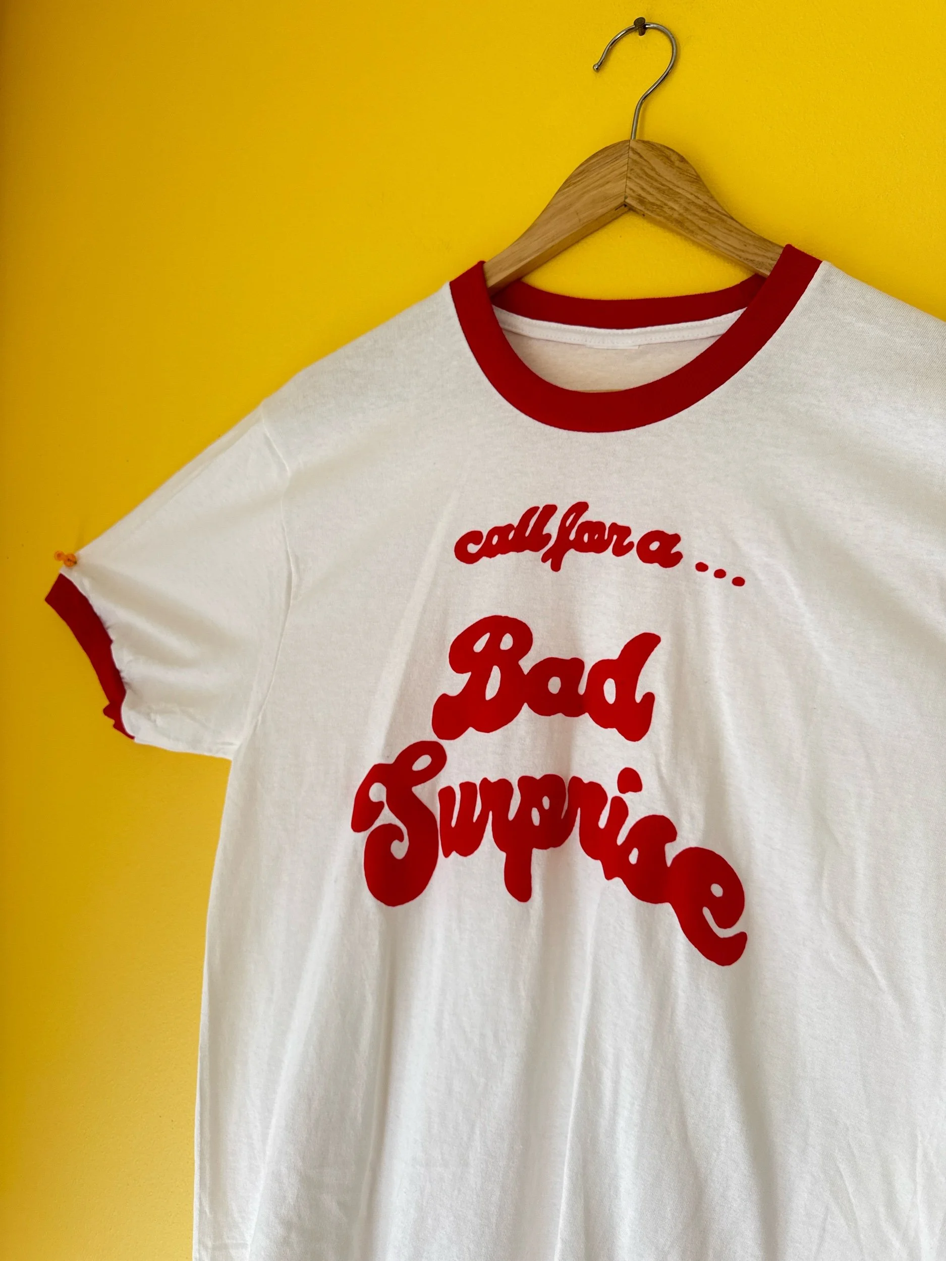 DAISY WORLD GOODIES › CALL FOR A BAD SURPRISE TSHIRT MEDIUM Image 1 of 3 Image 2 of 3 Image 3 of 3 CALL FOR A BAD SURPRISE TSHIRT MEDIUM $35.00 red flock on brand new red ringer shirt 19x30LOVE IT BUT IT’S NOT IN YOUR SIZE? MESSAGE ME ON MY CONTACT PAGE! Purchase Added! red flock on brand new red ringer shirt 19x30LOVE IT BUT IT’S NOT IN YOUR SIZE? MESSAGE ME ON MY CONTACT PAGE!